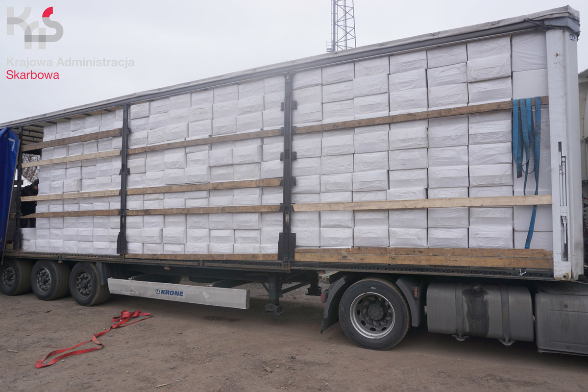 Po dokładnym sprawdzeniu ładunku na naczepie, a także zawartości kartonów znajdujących się w kontenerze, funkcjonariusze odkryli 16 mln szt. papierosów w opakowaniach z nadrukowanymi znakami towarowymi znanej zagranicznej marki tytoniowej. Szacunkowe straty Skarbu Państwa, gdyby ten towar trafił na rynek, mogłyby wynieść kilkanaście milionów złotych.