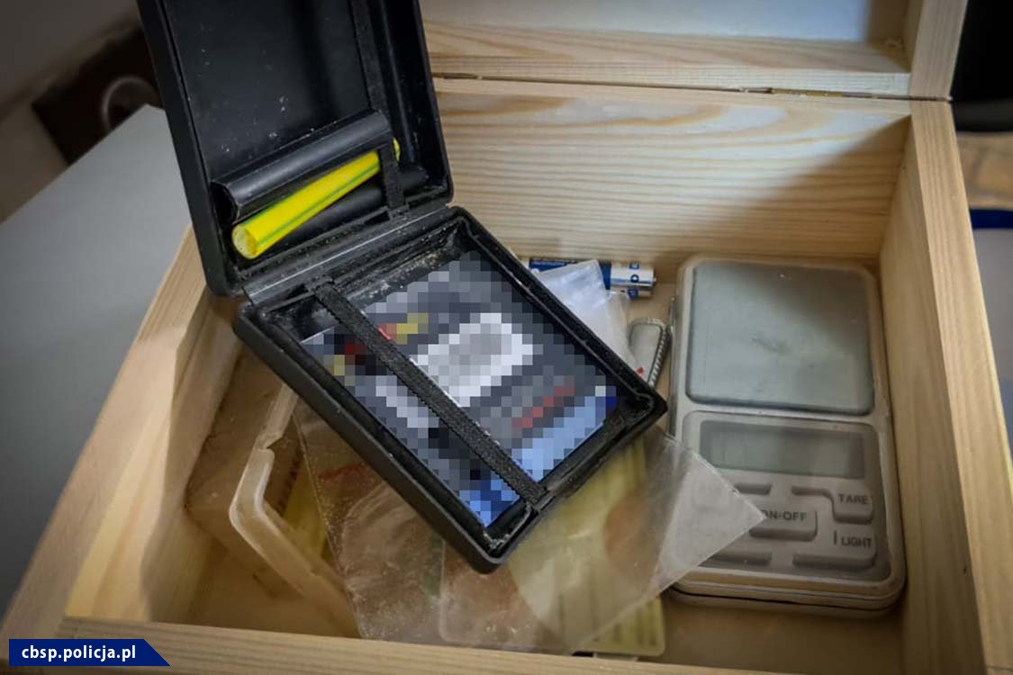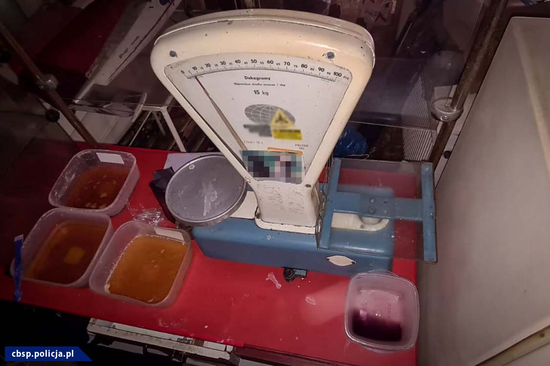 Po dokładnym zweryfikowaniu ustaleń, funkcjonariusze zatrzymali w Toruniu 36-latka. Na terenie wynajmowanej przez niego posesji, w pomieszczeniach gospodarczych znajdowała się kompletna linia służąca do produkcji środków odurzających oraz 9 kg mefedronu pozostawionego do wysuszenia. Tam też policjanci znaleźli i zabezpieczyli broń palną z amunicją oraz podrobiony dowód osobisty. Podczas akcji funkcjonariusze przejęli także prekursory i odczynniki chemiczne służące do produkcji BMK.