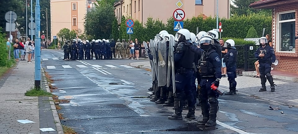 Zauważył, że funkcjonariusze mieli do czynienia z bardzo niebezpiecznymi sytuacjami. W pewnym momencie w funkcjonariuszy zaczęto rzucać kamieniami, butelkami z podpaloną cieczą, były też cegłówki. Wszystko to, co było pod ręką, to te osoby wykorzystywały, żeby na nas odreagować swoje emocje – dodał.